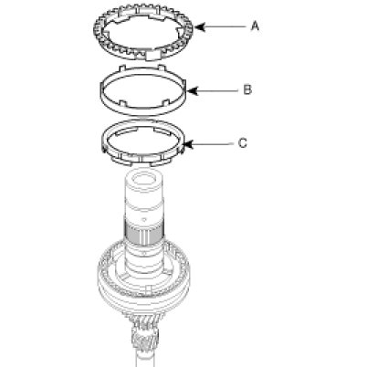- When installing the synchronizer hub, make sure that the fingers of synchronizer ring are seated correctly in its groove on the synchronizer hub.