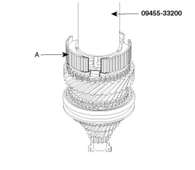 - When pressing the hub, make sure that the fingers of the 5th synchronizer ring(double cone) are seated correctly in the grooves of the hub.