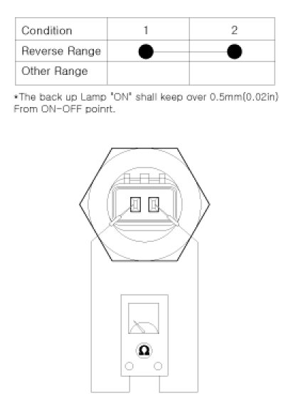 2. Check the continuity between no. 1 and 2 terminals of backup lamp switch.