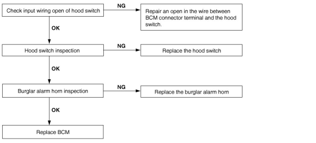 2. When hood is opened in ARM mode, burglar alarm does not work.