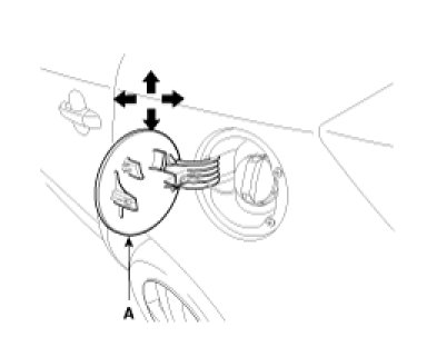 4. Check that the fuel fill door (A) fit flush against the body. If necessary, adjust it.