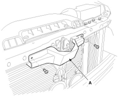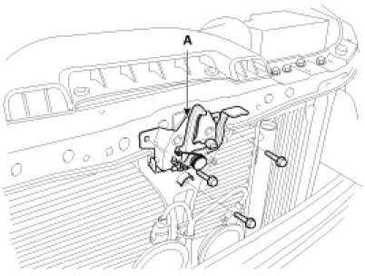 2. Loosen the bolts, then remove the hood latch cover(A).