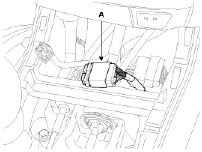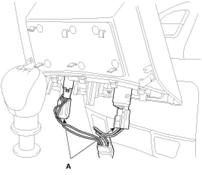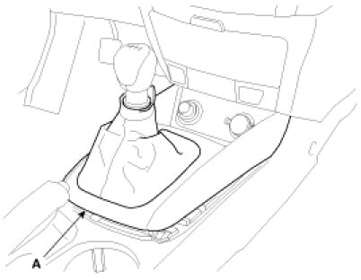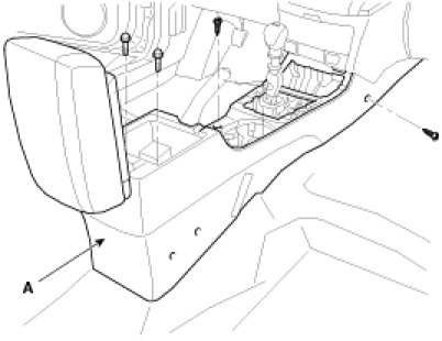 5. After loosening the console mounting screws, remove the floor console assembly (A).