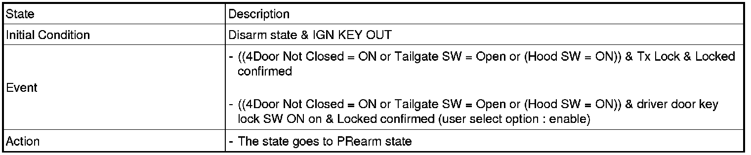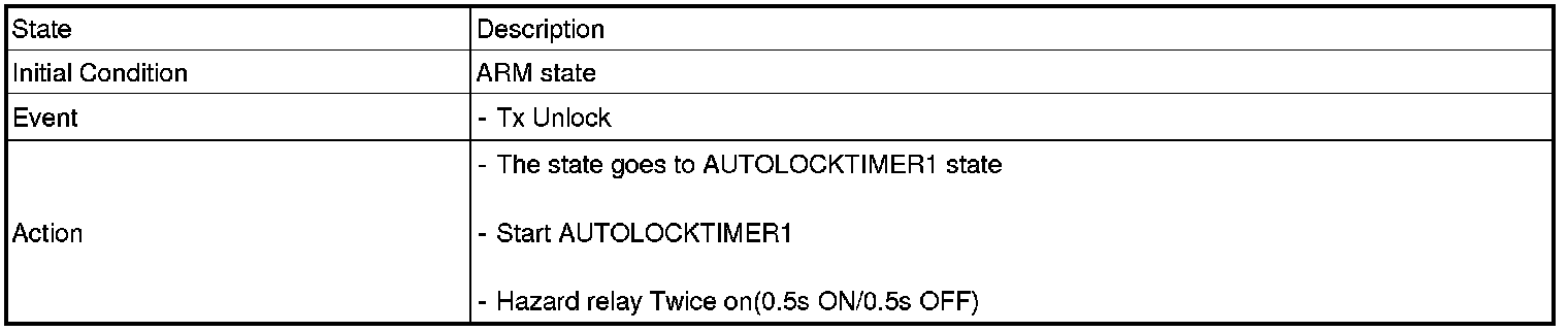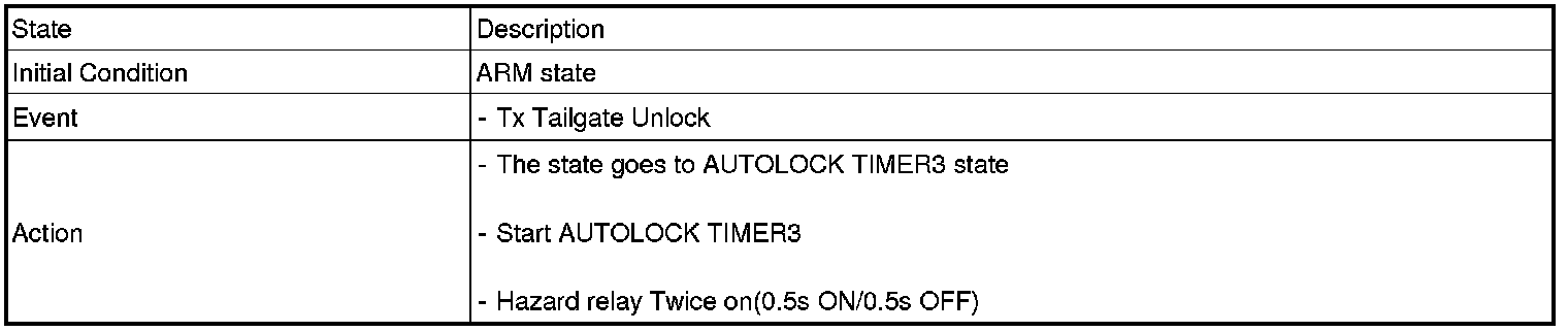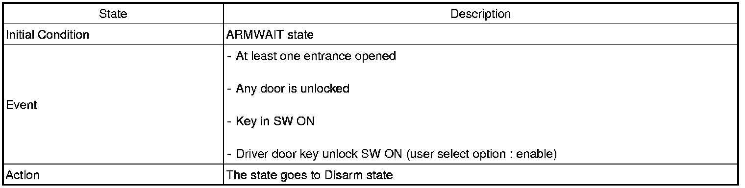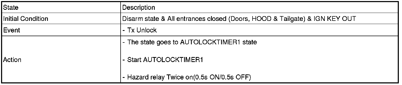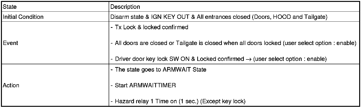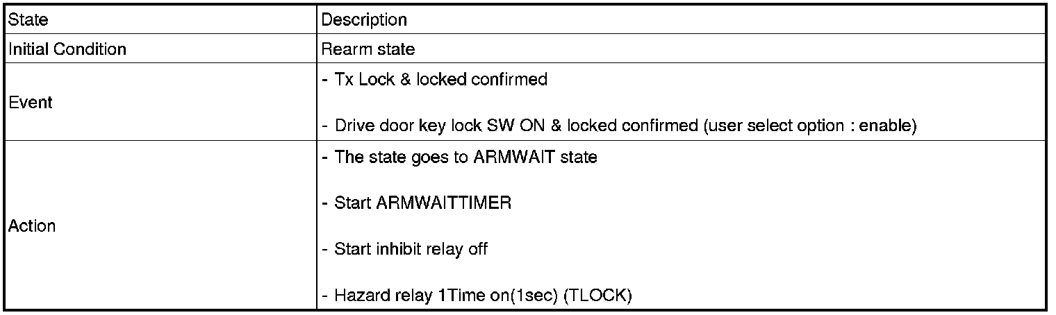 1. HORN OUTPUT is kept pace when operating HAZARD if ARM WAIT condition is maintained by TLOCK within 4sec after entering ARM WAIT by TLOCK.