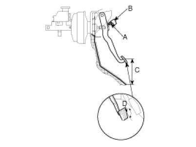 3. Loosen the pushrod locknut (A), and screw the pushrod in or out with pliers until the standard pedal height from the floor is reached. After adjustment, tighten the locknut firmly. Do not adjust the pedal height with the pushrod depressed.