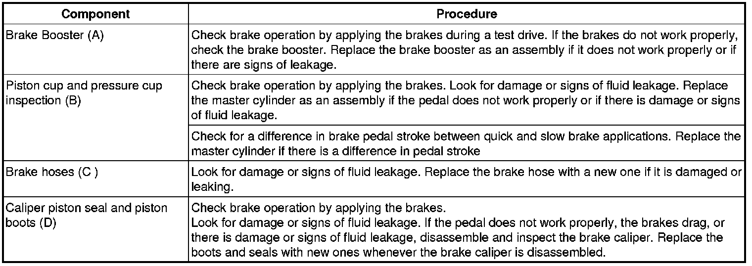 1. Run the engine for one or two minutes, and then stop it. If the pedal depresses fully the first time but gradually becomes higher when depressed succeeding times, the booster is operating properly, if the pedal height remains unchanged, the booster is defective.