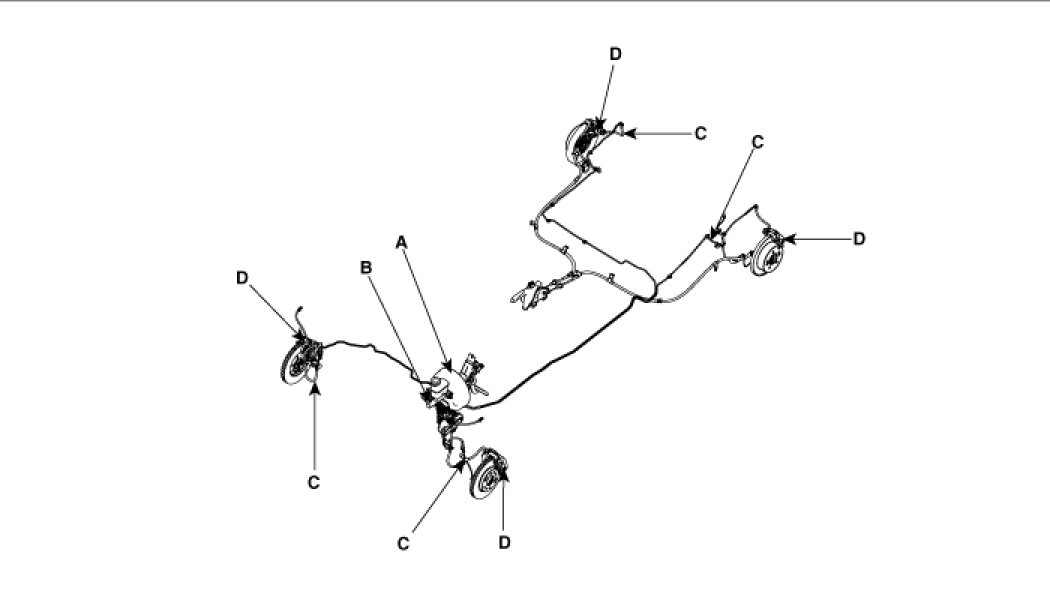 3. Start the engine, depress the brake pedal with approximately 120kg(1176.8N, 264.5 lb) of force, and check for oil leakage in the master cylinder, brake line and each connecting part. Repair the faulty parts as required.