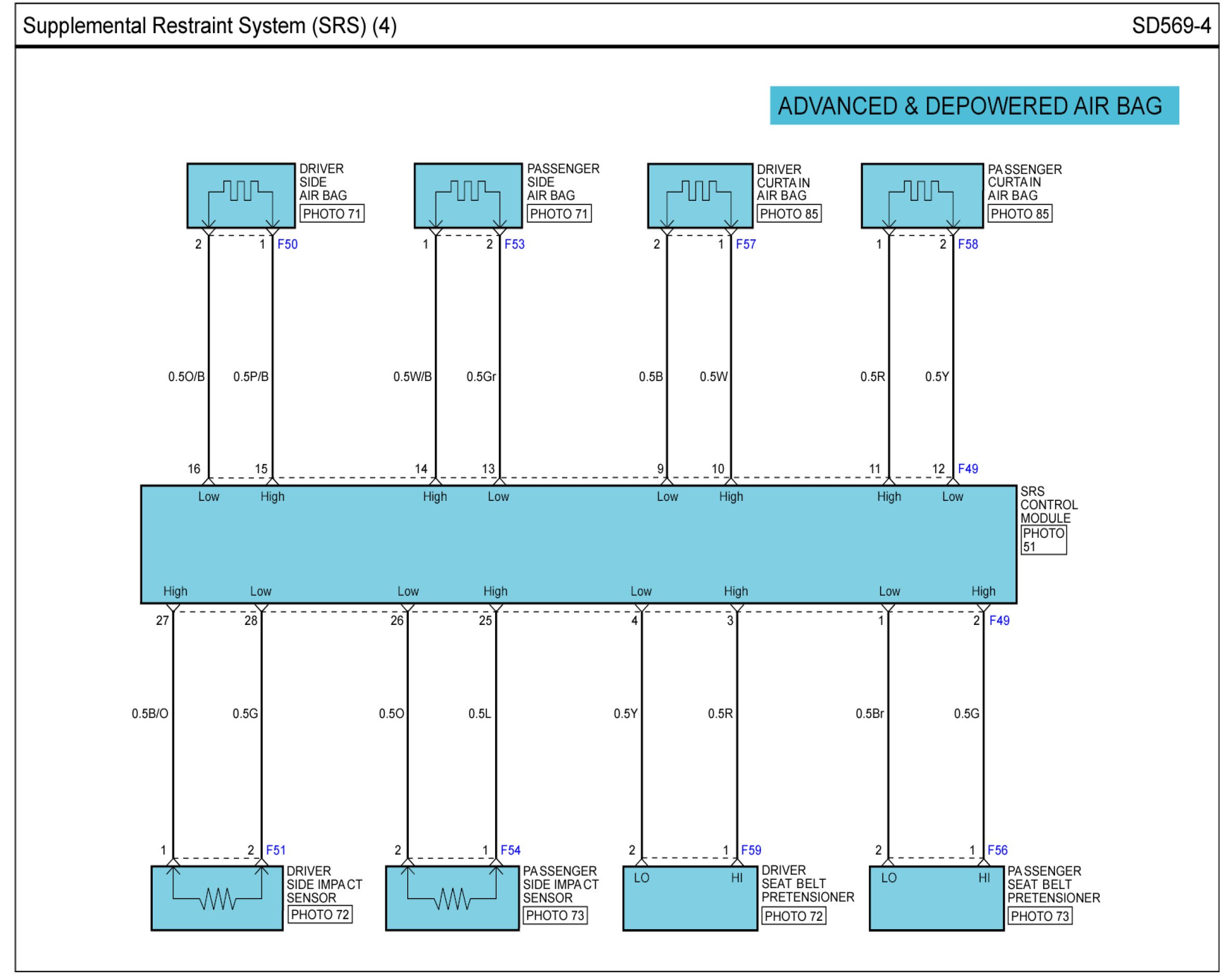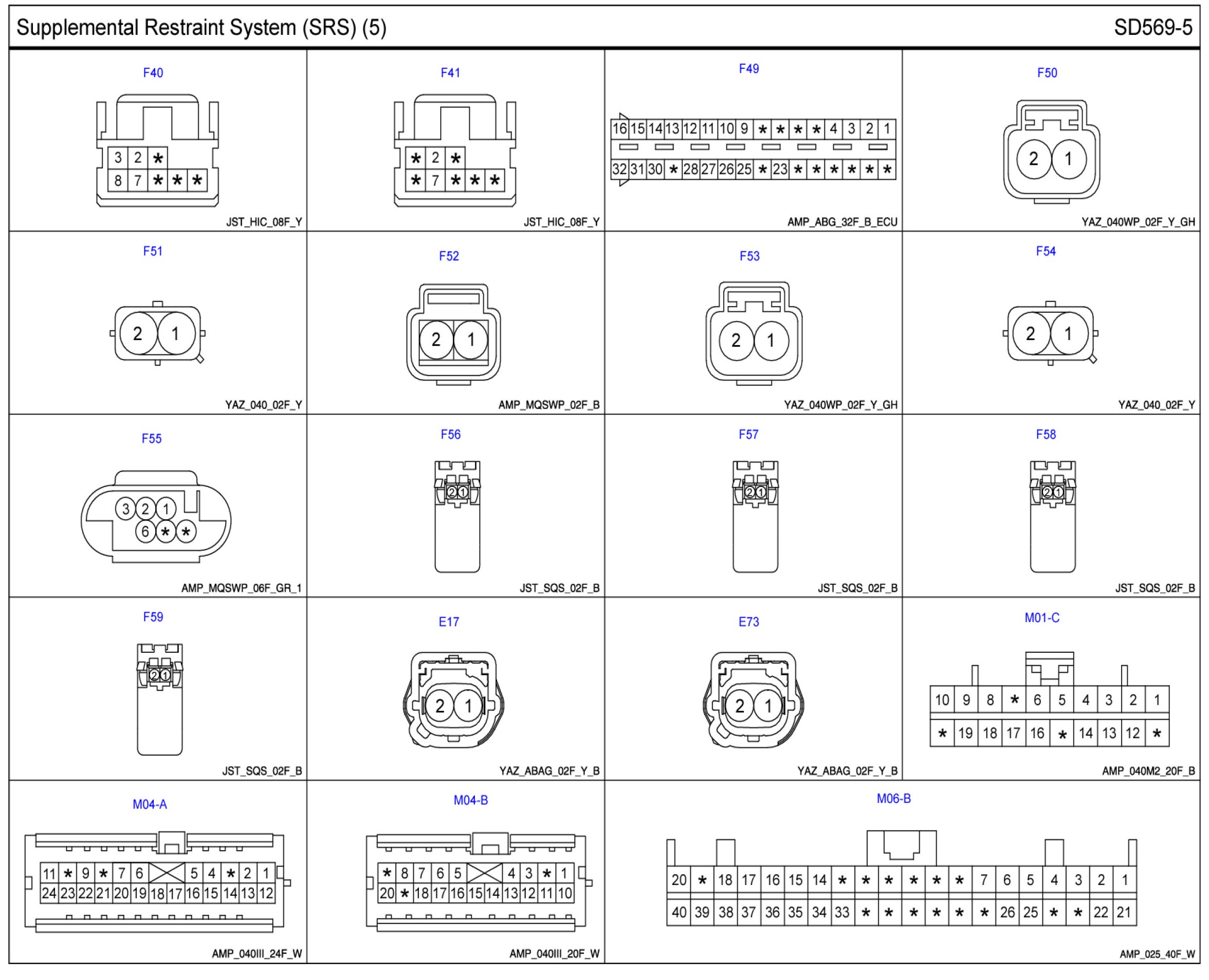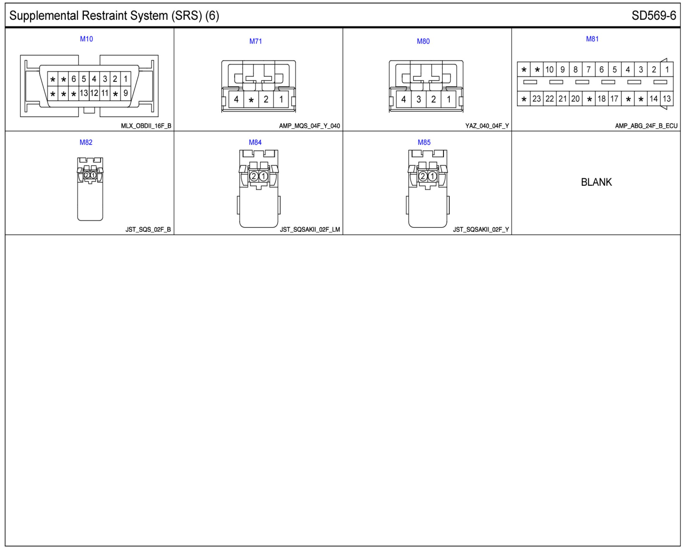 Supplemental Restraint System (SRS) Connector Pin Outs: