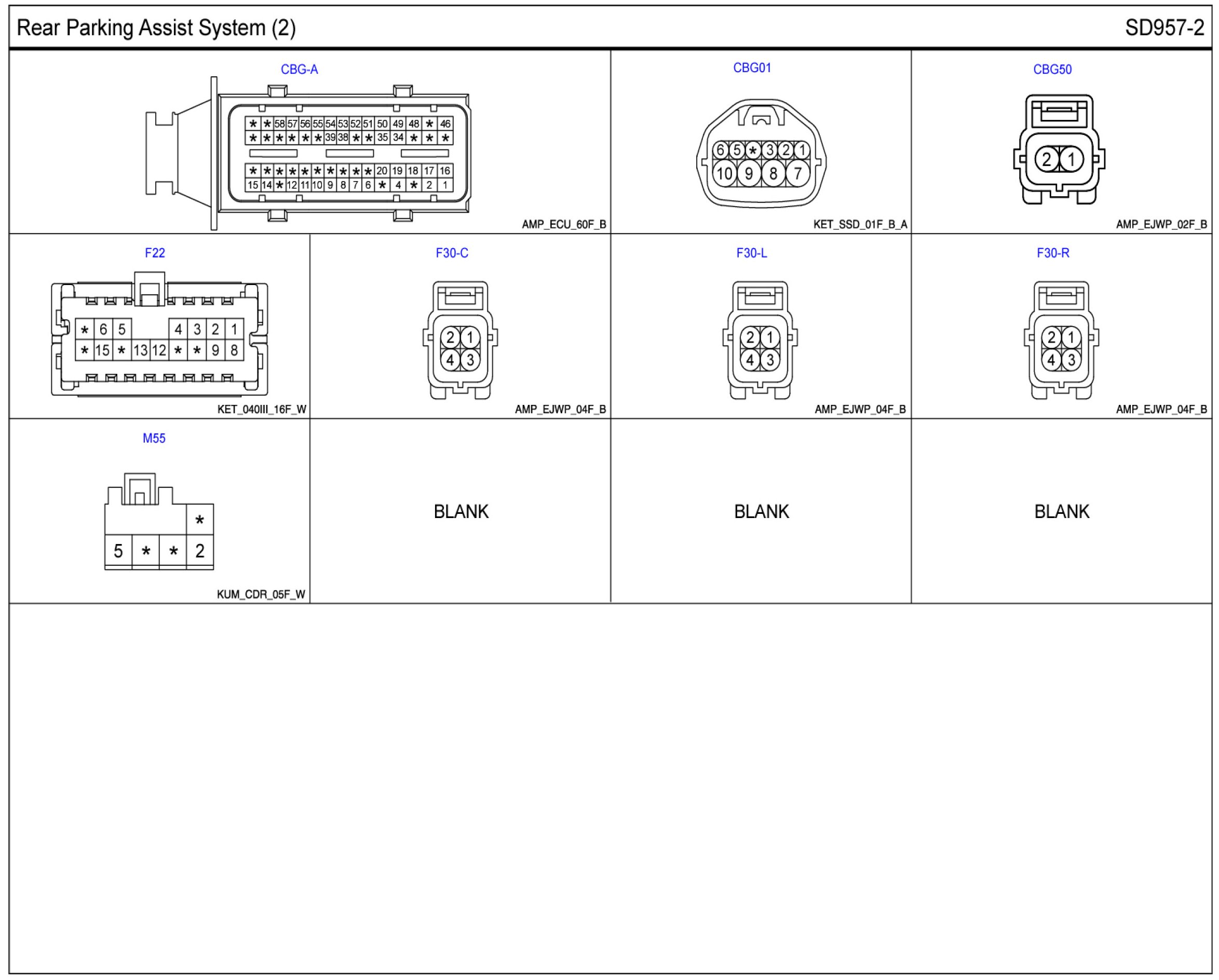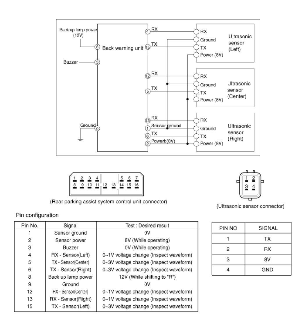 Rear Parking Assist System Connector Pin Outs: