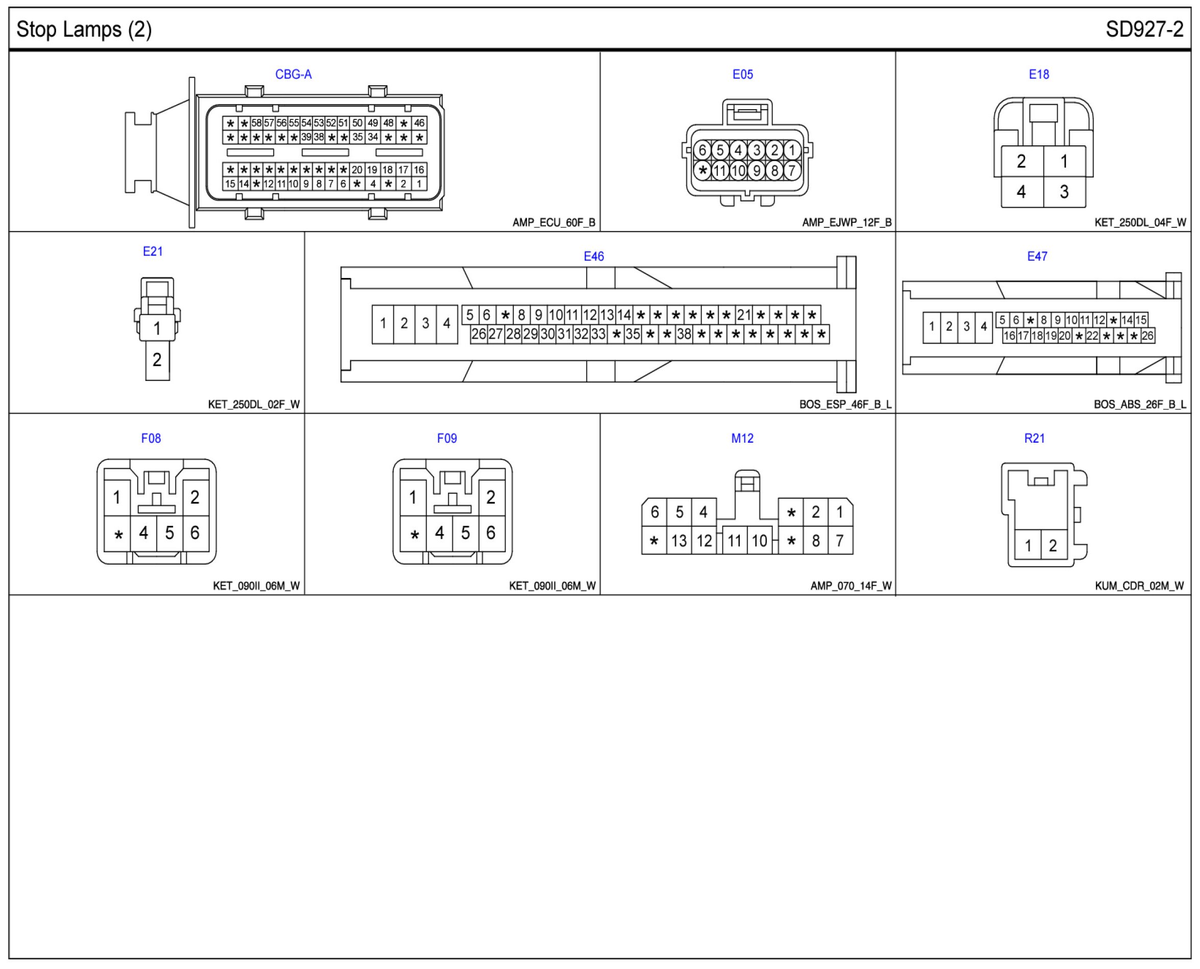 Stop Lamps Connector Pin Outs: