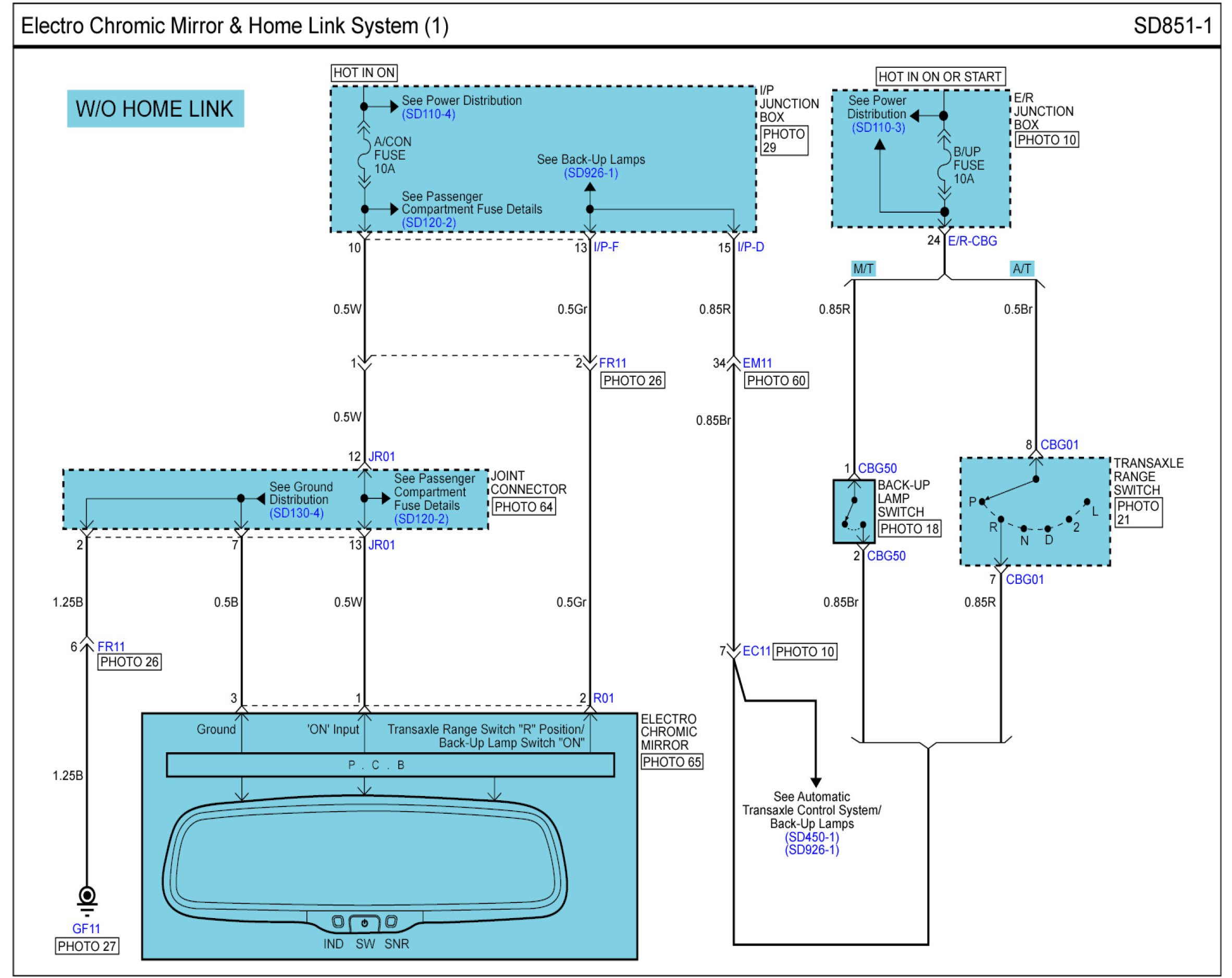 Electro Chromic Mirror & Home Link System Connector Pin Outs: