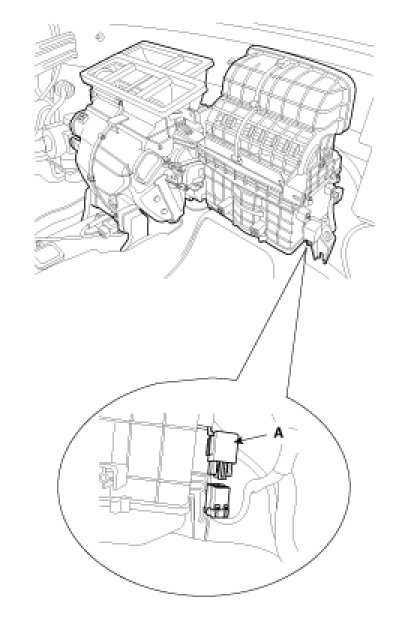 4. Remove the blower relay (A) after loosening the mounting screw.
