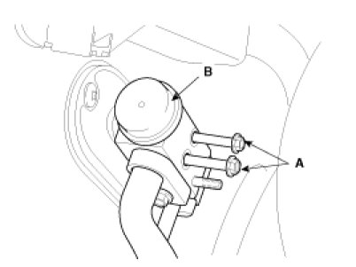 5. Remove the bolts (A) and the expansion valve (B) from the evaporator core.