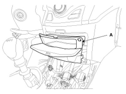 3. Remove the center facia lower tray (A) after loosening 2 screws and disconnecting the connectors.