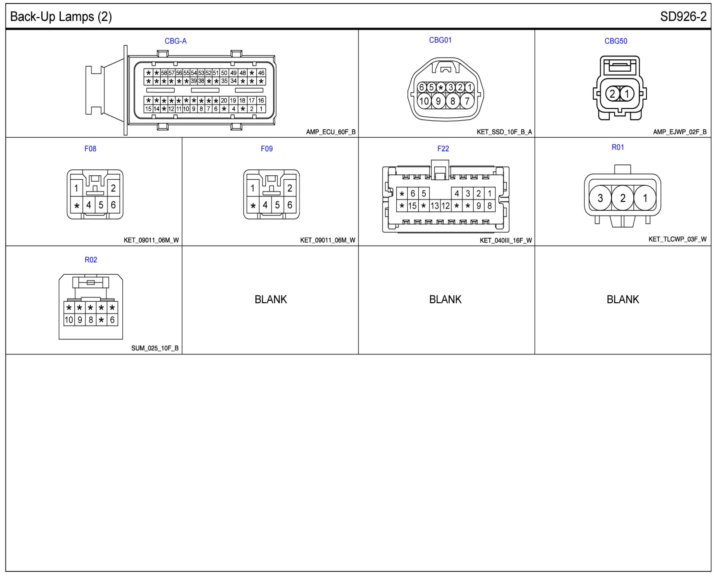 Back-Up Lamps Connector Pin Outs: