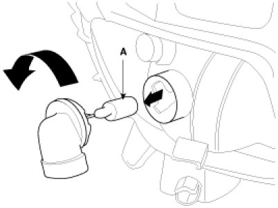 4. Remove the front fog lamp bulb (A) turning in the counter clock-wise direction.