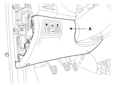 3. Remove the driver crash pad reinforcing panel (A) after loosening 5 bolts.
