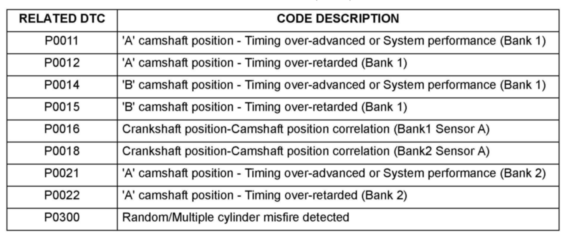 RELEVANT DIAGNOSTIC TROUBLE CODES (DTC)