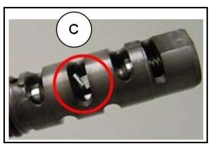 4. If the OCV does not move forward, examine if a foreign object like an aluminum chip (C) is jammed inside the OCV.