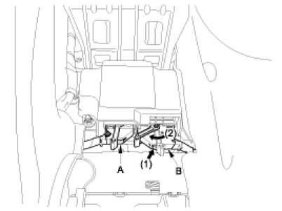 6. Disconnect the SRSCM harness connector(A) and (B) from the SRSCM.