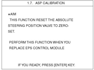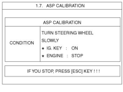 7. Confirm the vehicle condition (IG On) and then turn the steering wheel until massage changes to the next screen.
