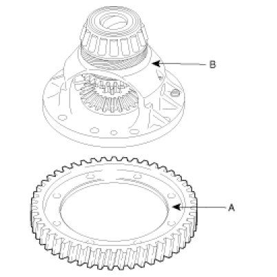 2. Disassemble the differential drive gear (A) from the differential case by using a rubber hammer or a gear pulley.