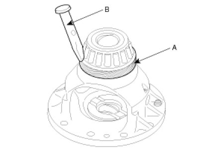 2. Insert the taper roller bearing(A) and press in by using a hammer or a pressing tool and the special tool (09493-2F200).