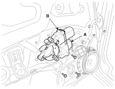 2. After disconnecting the connector (A), remove the power window motor (B).
