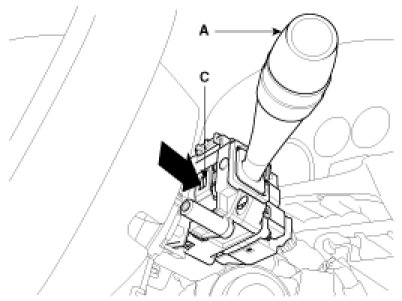 3. Remove the wiper switch (A) after disconnecting the connector(B) with pushing the lock pin (C) and loosening 2 screws.