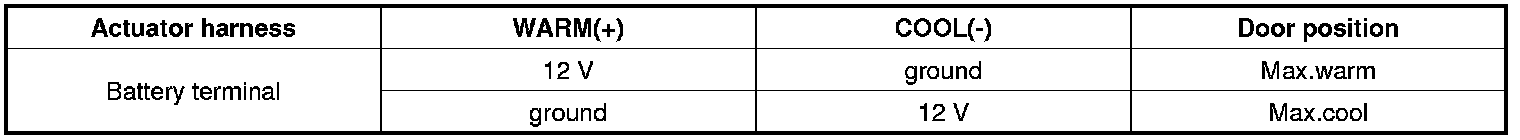 3. Connect (+) terminal of battery to WARM (+) of passenger air mix actuator and (-) terminal to COOL (-). (Component side)