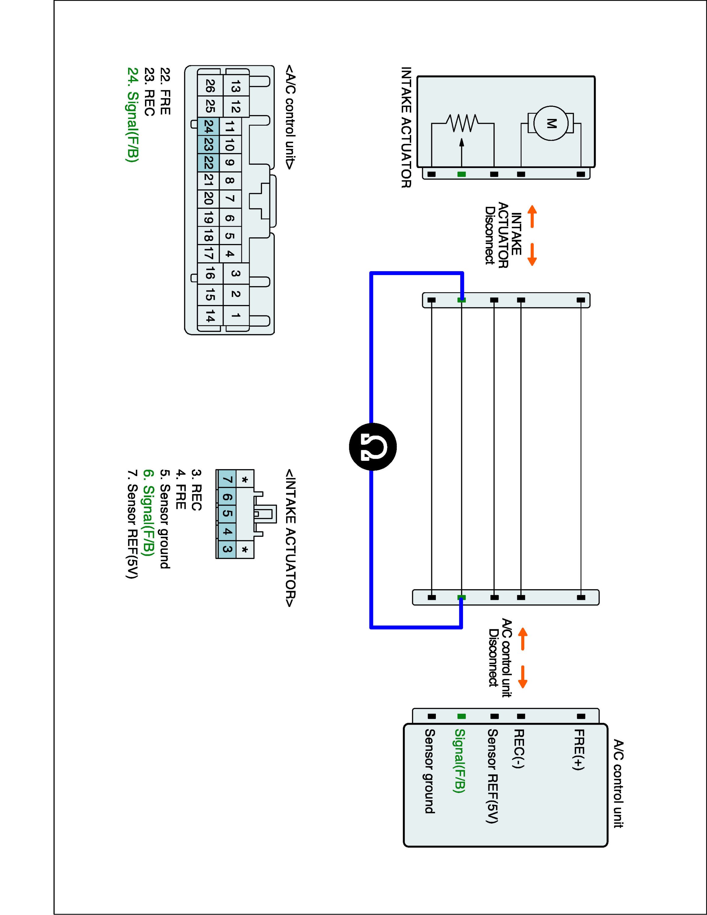 2. Disconnect Intake actuator and Connect A/C control unit main harness connector.