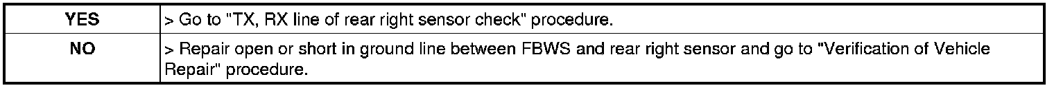 3. Measure resistance of TX, RX line between FBWS unit and rear right sensor harness connector.