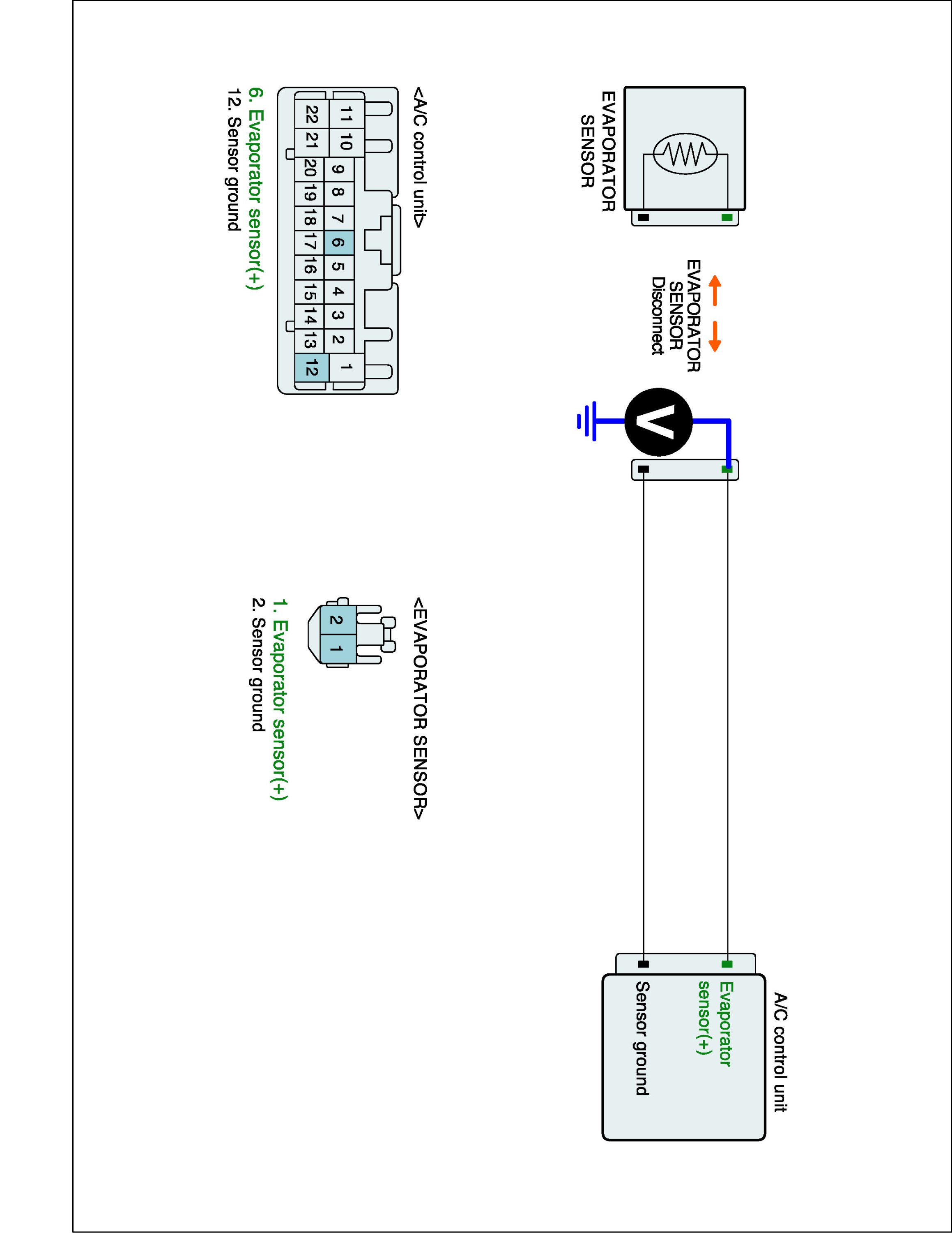 2. Disconnect Evaporator sensor and Connect A/C control unit main harness connector.