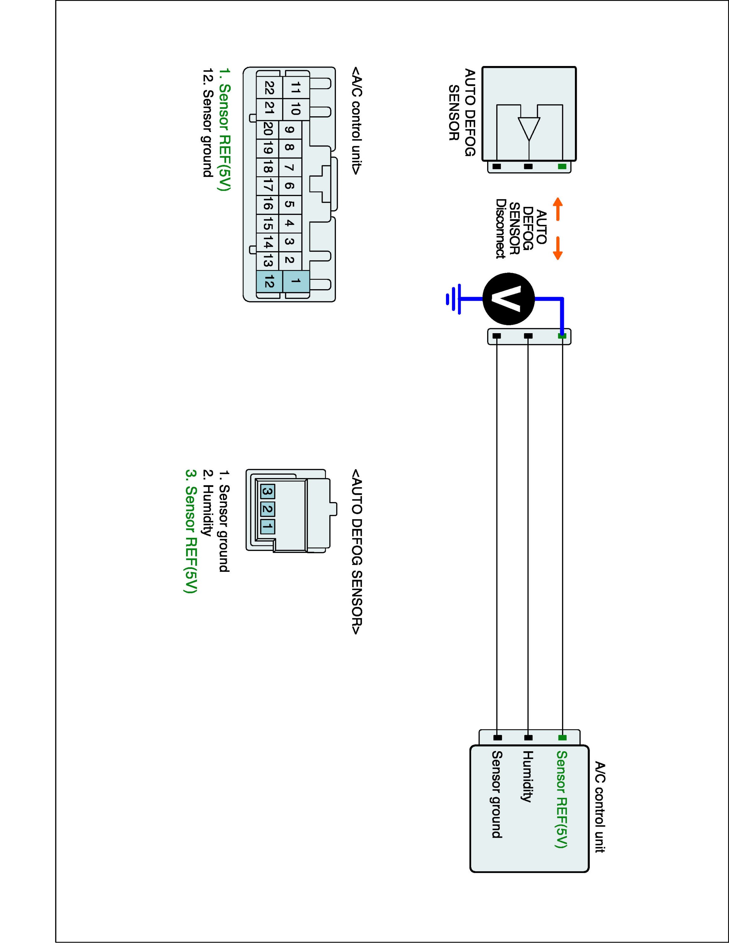 4. Measure voltage between Power terminal of Auto Defog sensor harness connector and chassis ground.