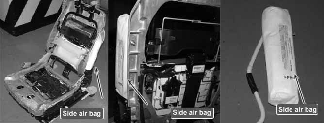 Side Airbag (hereinafter referred to SAB) located in driver and passenger seat protects passenger's head and shoulder. SAB is consist of air bag and inflator.