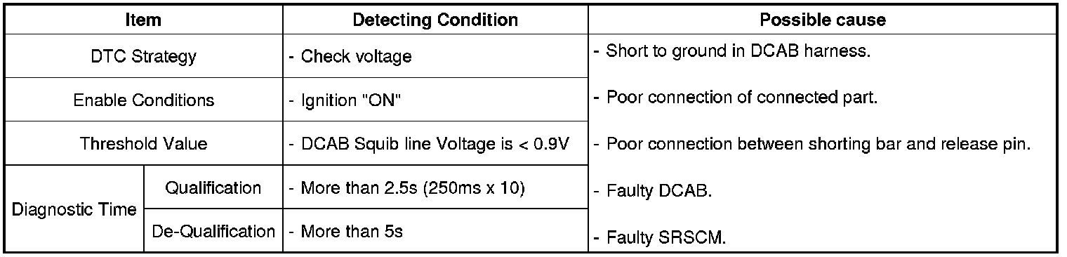 The SRSCM sets DTC B1475 if there is a short to ground in DCAB harness.