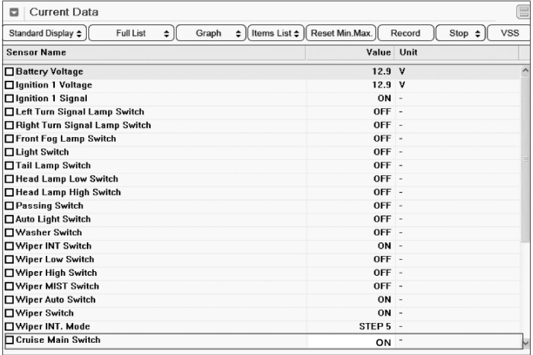 3. Check whether "Cruise Switch" is turned to "ON" when the cruise switch is pressed.