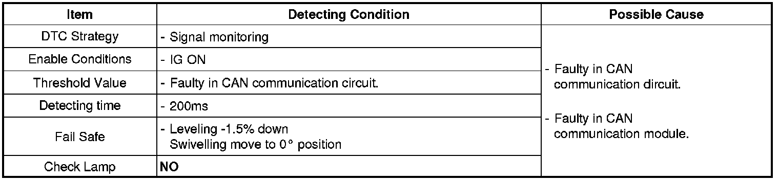When the AFLS ECU cannot read the data from the ECM through the CAN-BUS line, the AFLS ECU sets this code. CAN-BUS circuit malfunctioning or ECM can be a possible cause of this DTC.