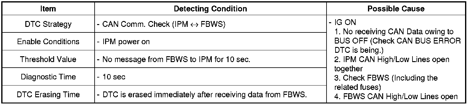 This code is outputted when IPM can't receive data from FBWS by CAN Line for 10 sec.