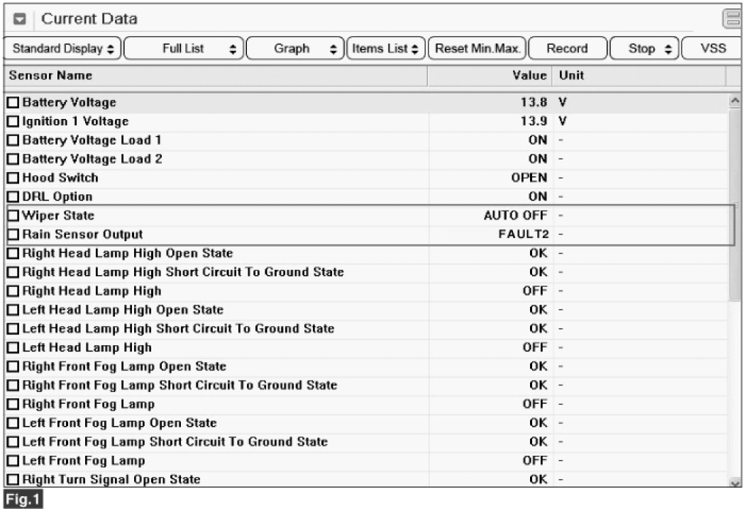 Fig. 1) "Wiper State" & "Rain Sensor Output" (With wiper switch "AUTO" & engine running)