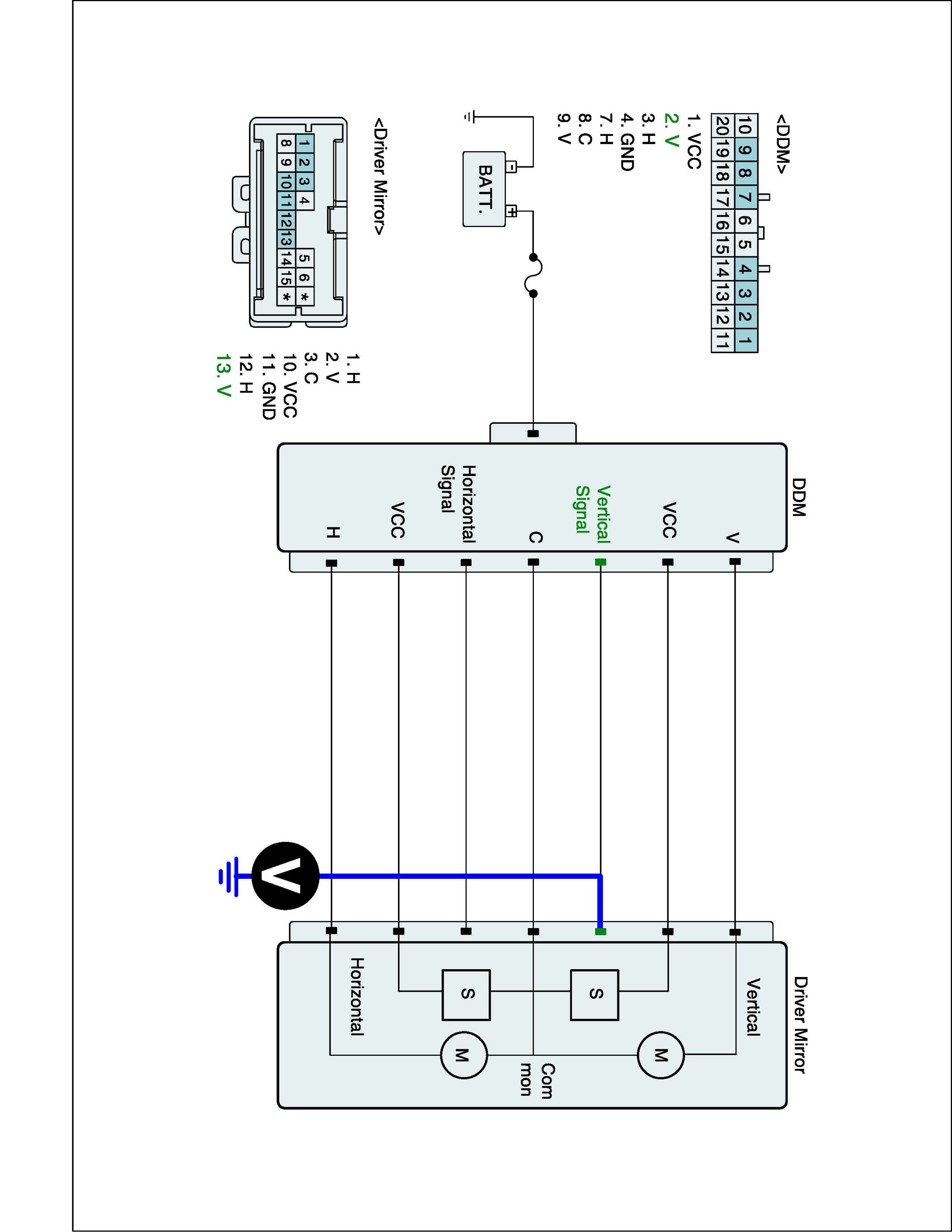 3. Measure the signal voltage of "Vertical Sensor" with pressing the power window main switch.