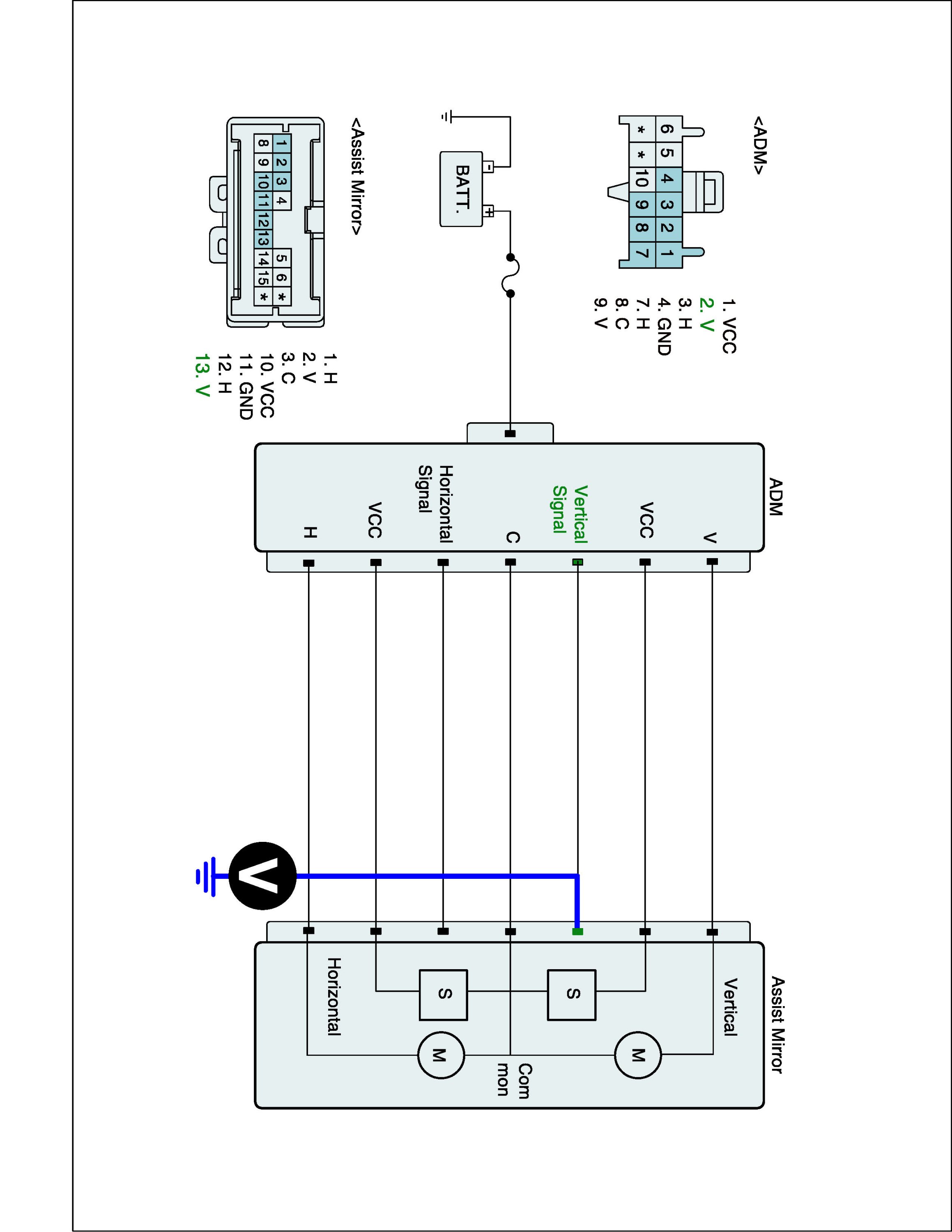 3. Measure the signal voltage of "Horizontal Sensor" with pressing the power window main switch.