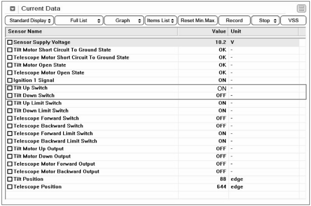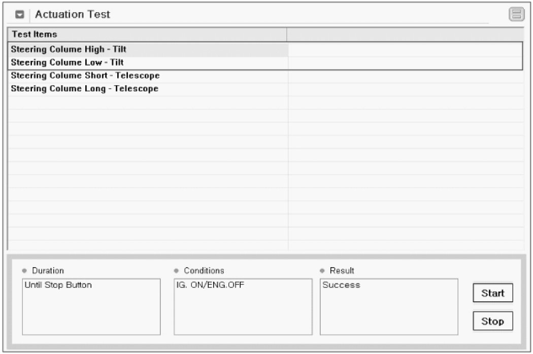 4. Execute "Tilt Steering Column (UP, DOWN)" test.