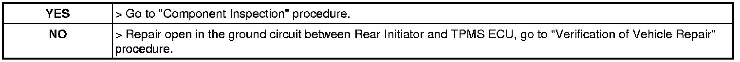 3. Measure resistance between ground terminal of Rear Initiator harness connector and ground terminal of TPMS ECU harness connector.