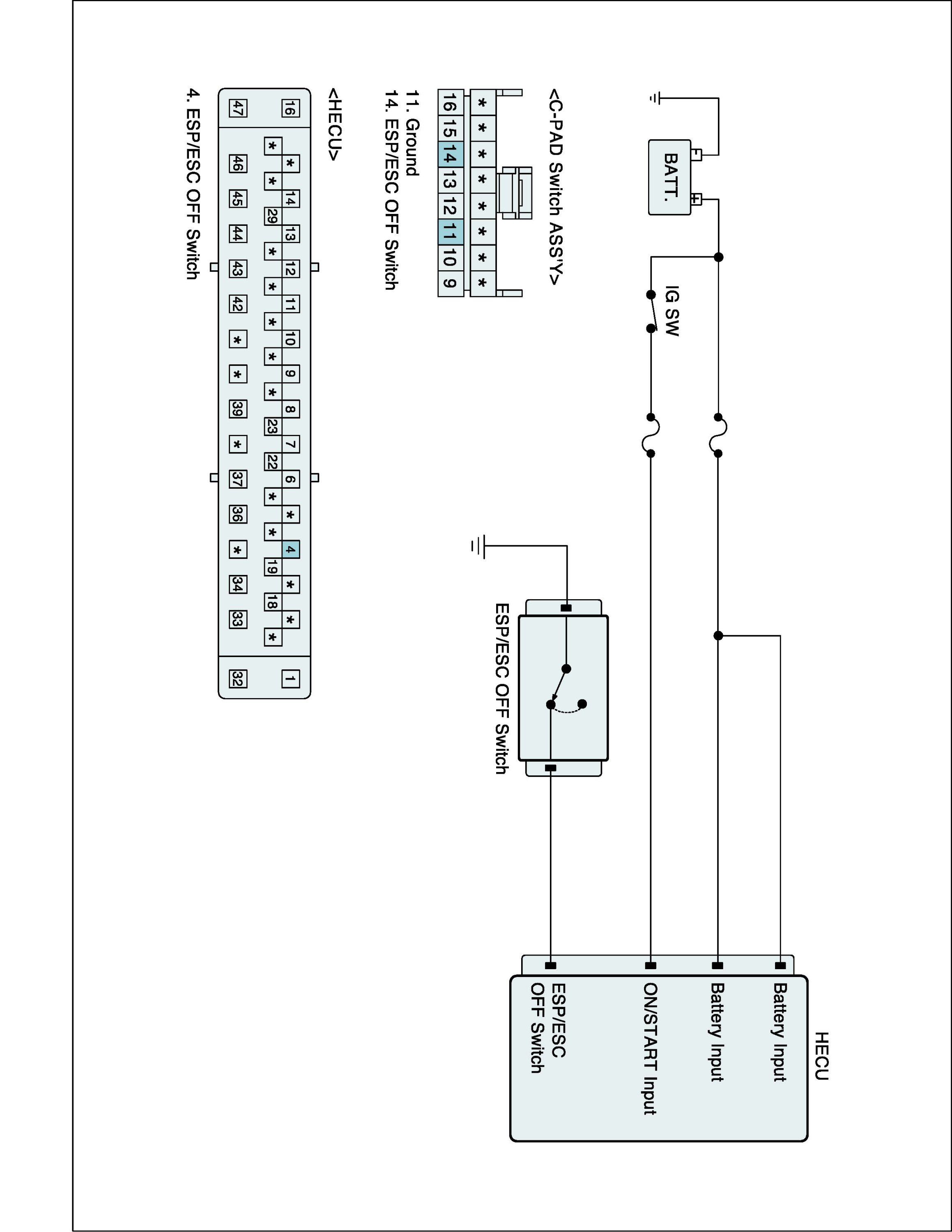 The HECU monitors the ESP/ESC OFF switch signal and if the ESP/ESC OFF switch signal is inputted for more than 1 minute, This DTC is set.