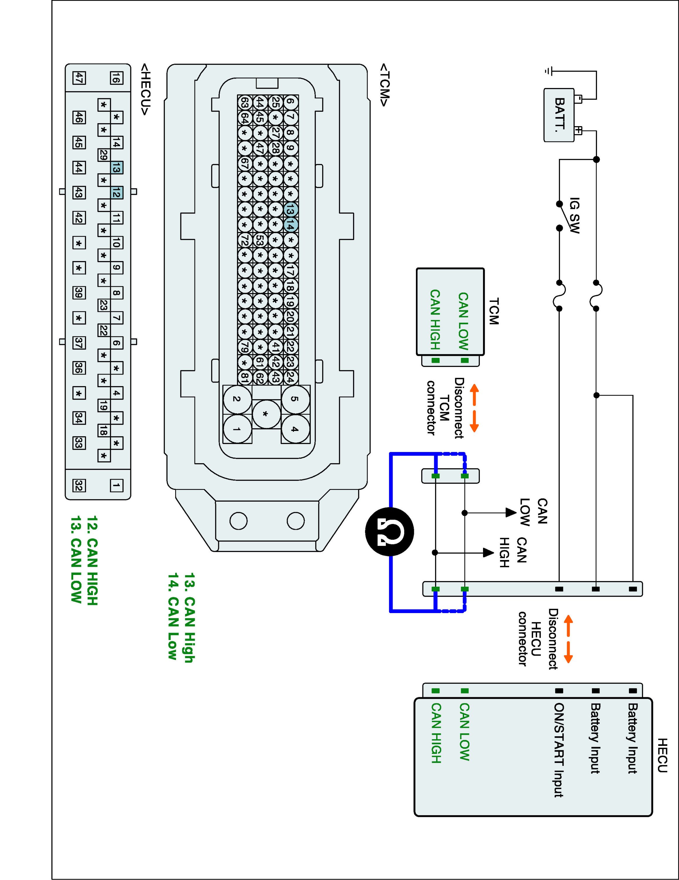 2. Disconnect TCM connector and HECU connector.