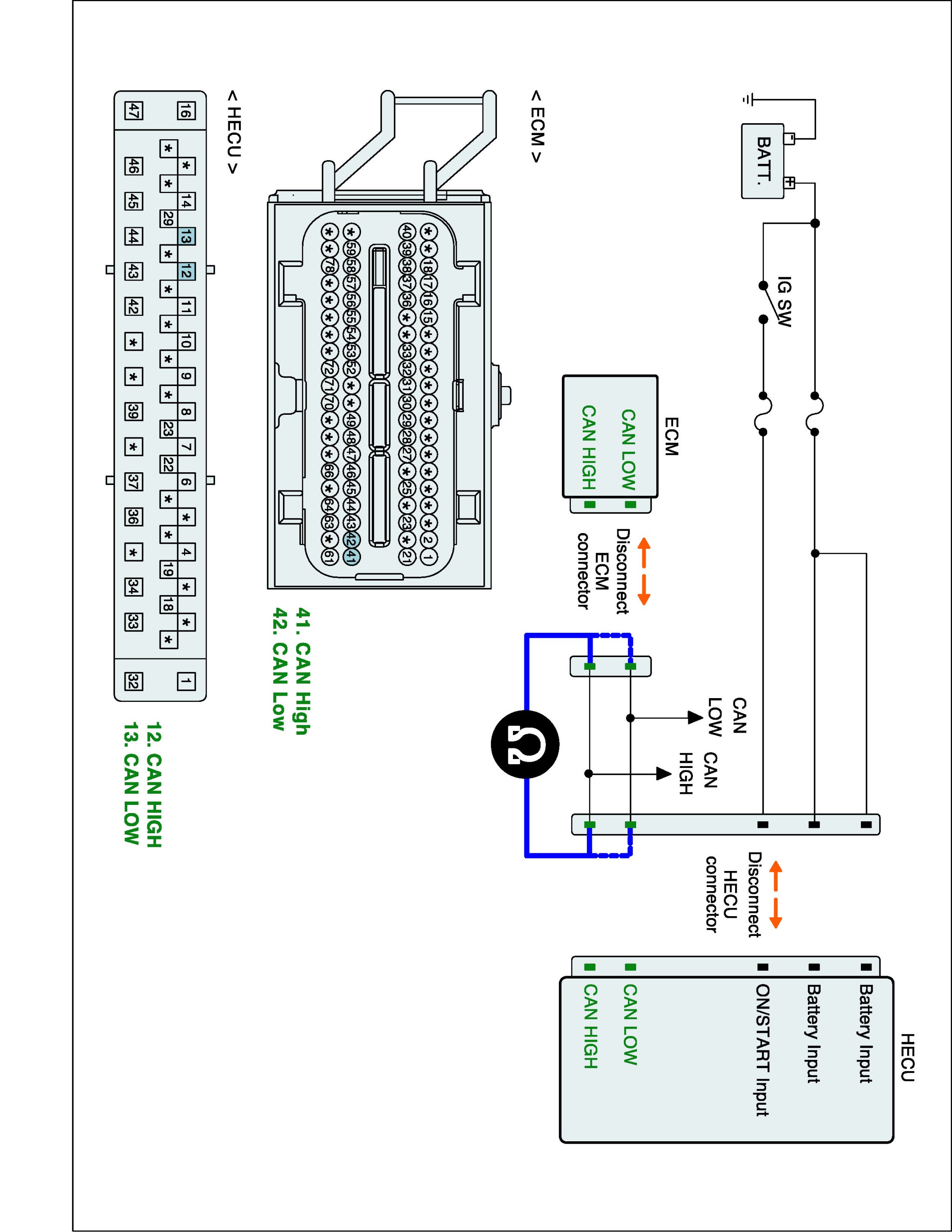 2. Disconnect ECM connector and HECU connector.
