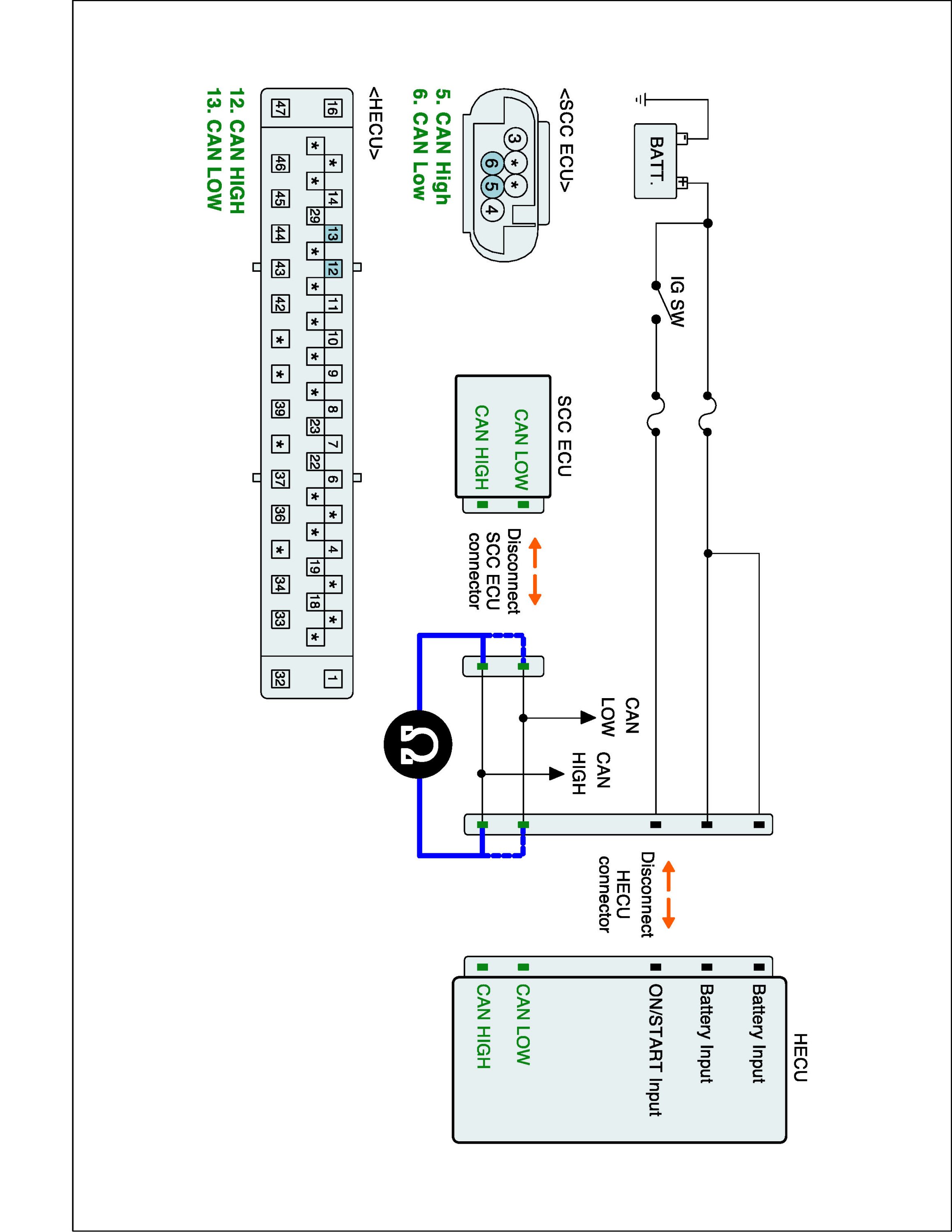 2. Disconnect SCC ECU connector and HECU connector.