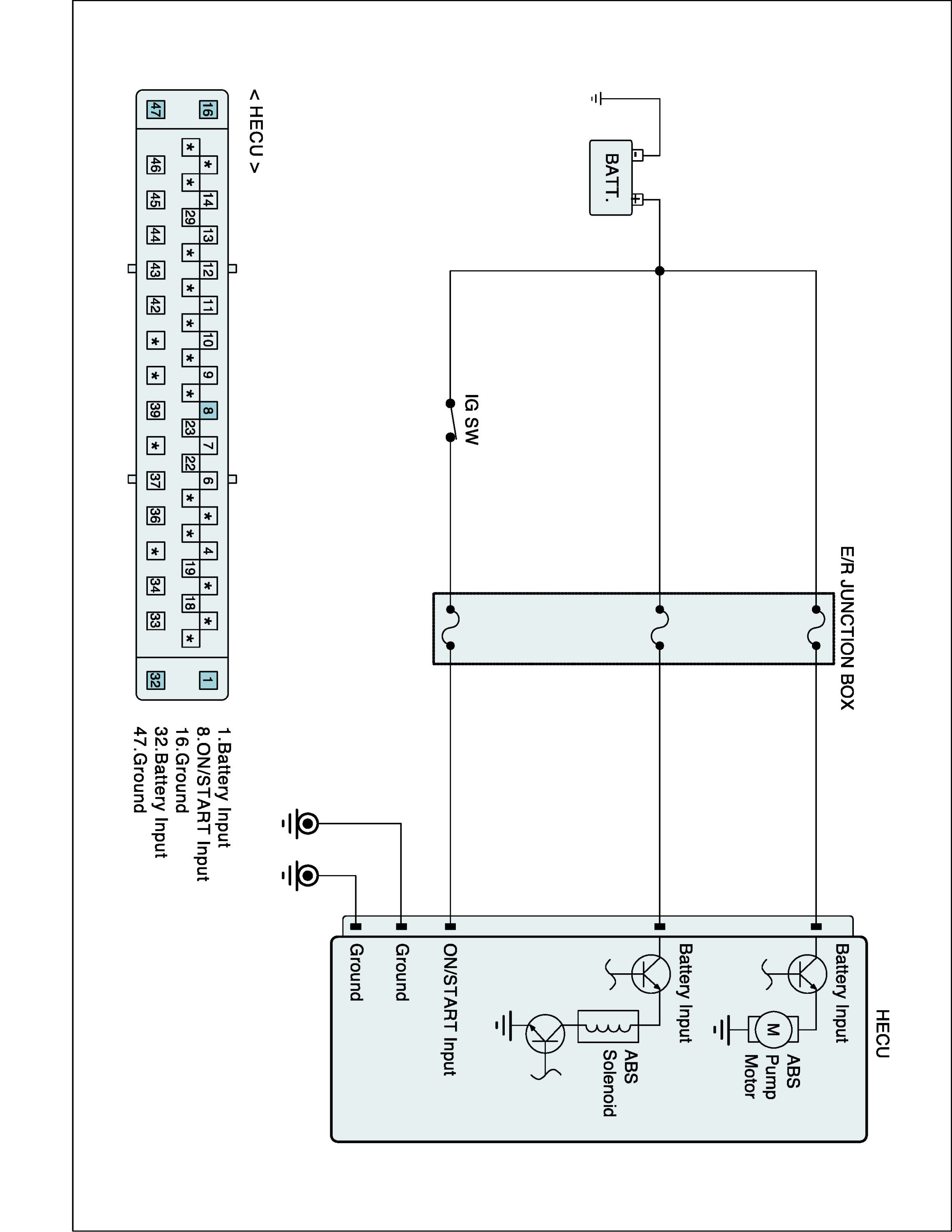 The HECU supplies battery power to the electric motor through the motor relay which is controlled by the Electronic Control Unit (ECU). The electric motor pump supplies hydraulic pressure to all wheel brake calipers by operating the piston inside the pump.