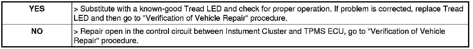 3. Measure resistance between tread lamp control terminal of TPMS ECU harness connector and tread lamp control terminal of Instrument Cluster harness connector.